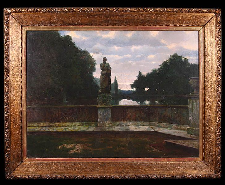 Taras pałacowy z antycznym posągiem