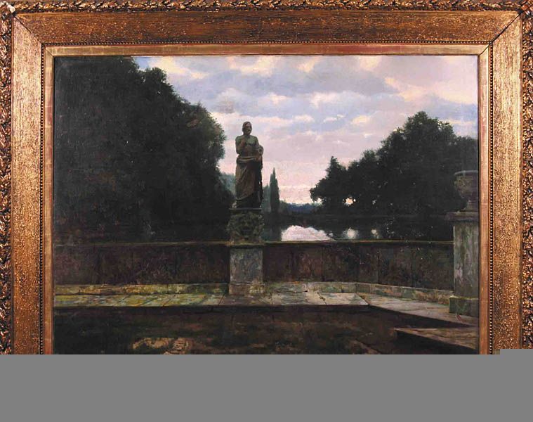 Taras pałacowy z antycznym posągiem, 1899 r.