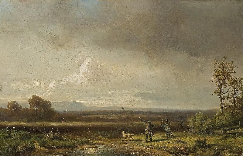 LANDSCAPE OF HUNTERS HUNTING FOR BIRDS