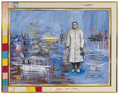 | Oil gold leaf and mixed media on canvas laid on board | |