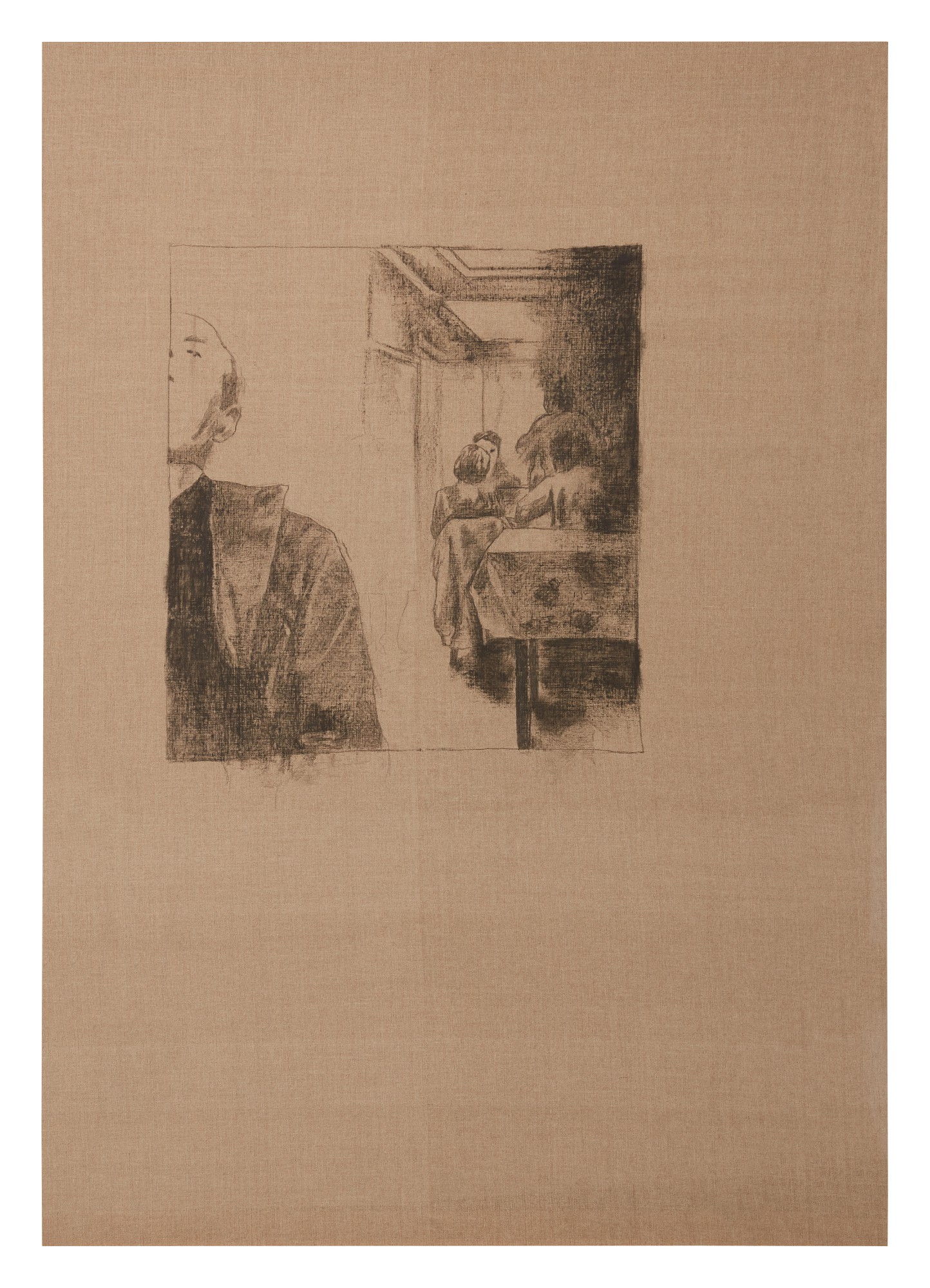 Charcoal and ink on linen, in artist's frame