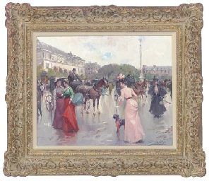 Elegant figures in a Parisian square