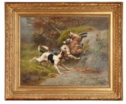 Deux chiens prenant un renard