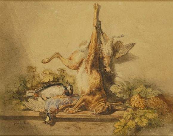 Nature morte aux perdrix, lièvre et bécasse