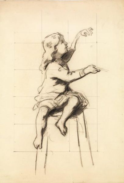 Étude d'enfant pour Saint Joseph et l'Enfant Jésus Pierre noire et estompe
