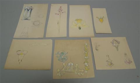 GROUP OF 7 WATERCOLORS - JEWELRY STUDIES, VASE STUDY ETC