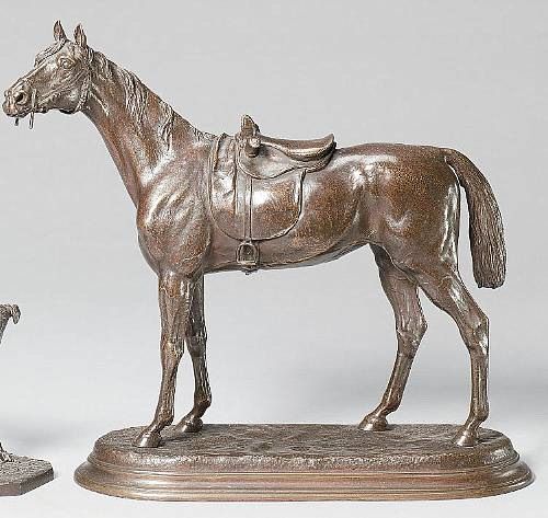 A bronze equestrian model of a saddled mare