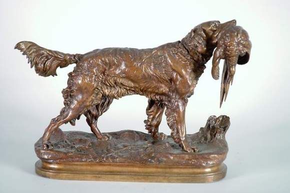 Chien de chasse rapportant un faisan