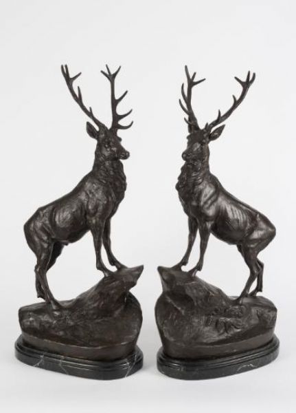 A Pair of Bronze Stags
