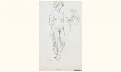 Femme nue debout et femme en lecture