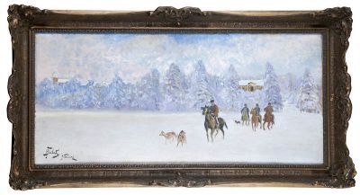 PEJZAŻ ZIMOWY Z JEŹDŹCAMI