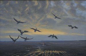 Pink Feet geese returning to The Wash, Holbeach