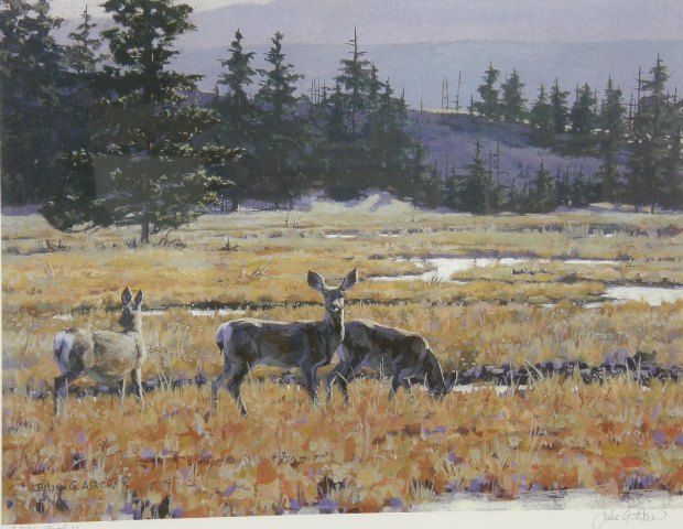 Late Watch, deer in Yellowstone Park with conifers in the foreground
