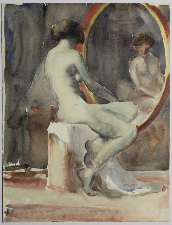 Nu féminin assis devant un miroir