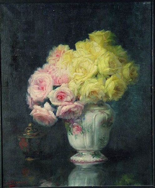 Roses in a faience vase