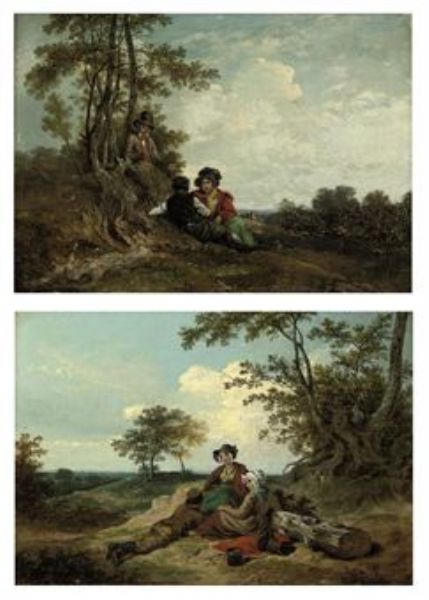 | A wooded landscape with figures resting under a tree; and A wooded landscape with figures resting by a log | |