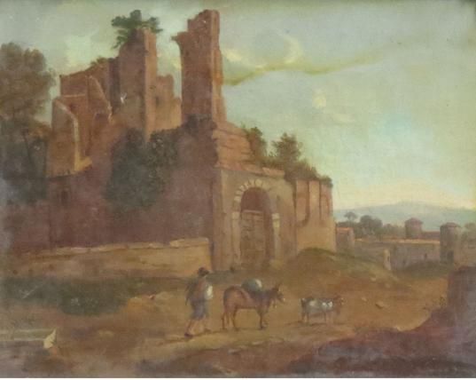 | Italian Landscape with a Traveler on a Road Approaching a Town | |