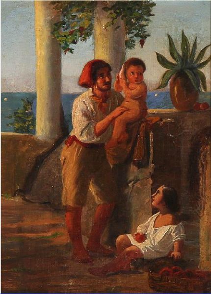 Loggia with an Italian man and two children