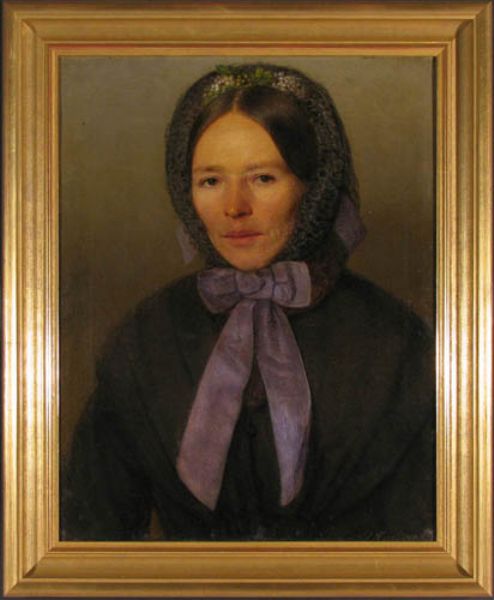 Portrait einer jungen Bürgersfrau im Pelerinenmantel mit Pelzkragen