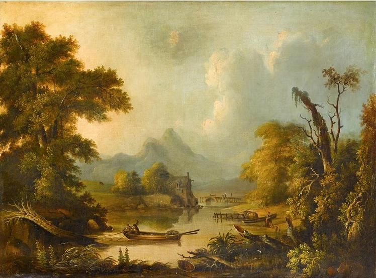 EXTENSIVE LANDSCAPE WITH BOATERS