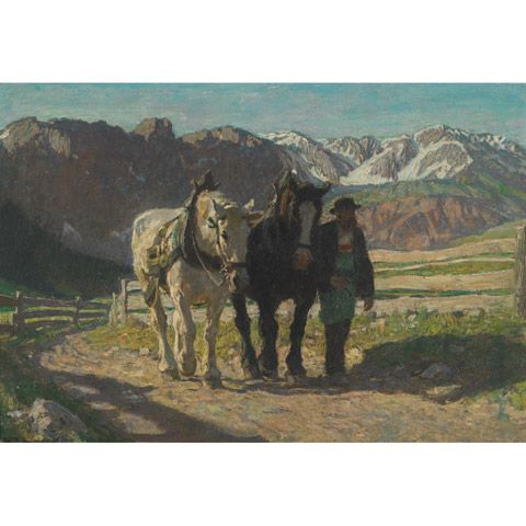 | HORSE TEAM AND FARMER ON A SUNLIT ROAD | |