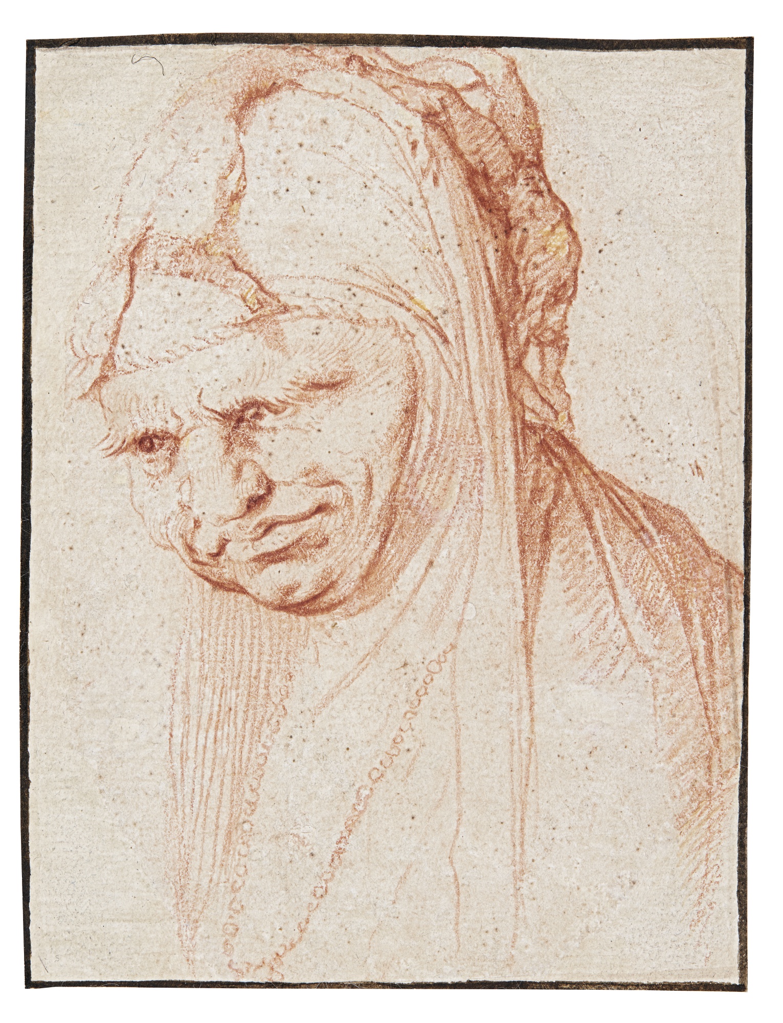 | HEAD OF A WOMAN WEARING A VEIL WITH TWO SMALL NAKED FIGURES ON IT | |