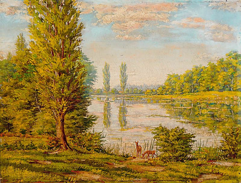 Flussauenlandschaft mit Rehen