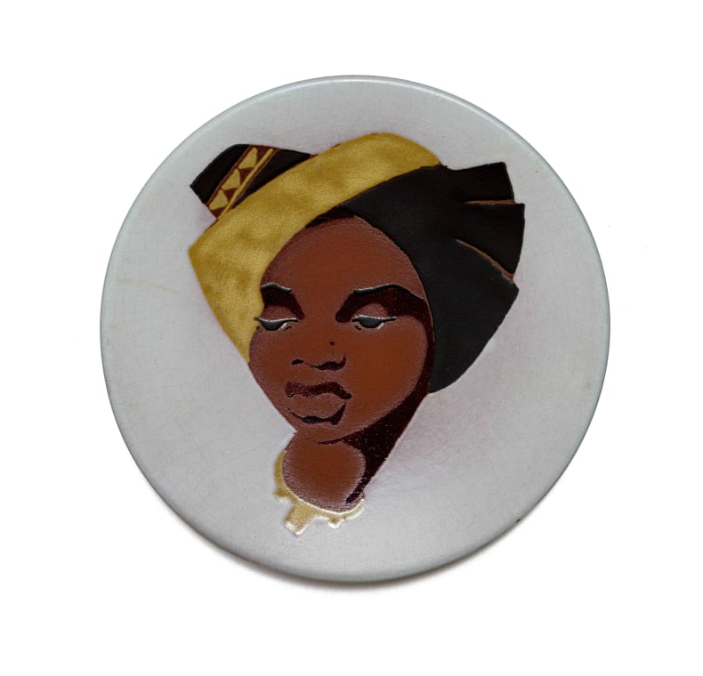 | Small plate decorated with a portrait of an Ndebele woman with headdress | |
