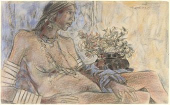| Charcoal graphite and coloured chalk on paper | |