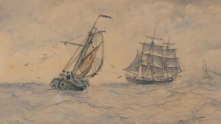 Three ships in rough sea