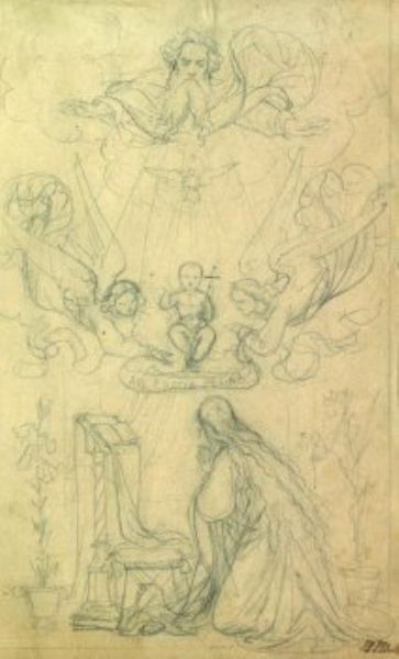 | Entwurf für eine Anbetungsszene mit Gottvater, Heiligem Geist und Jesusknaben | |