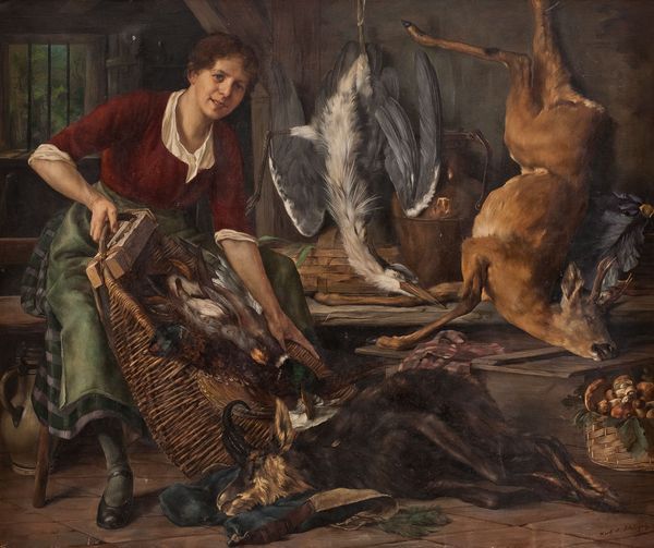 Kücheninterieur mit erlegtem Wild