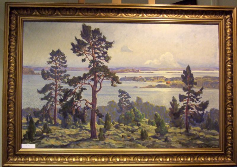 Skärgårdsmotiv med solbelysta tallar