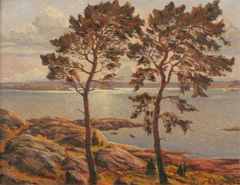 Skärgårdsmotiv med tallar i förgrunden