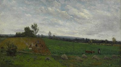 Landschaft mit Kartoffelernte