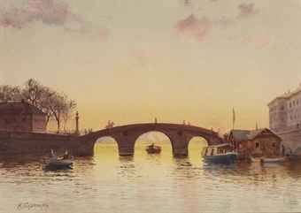| View of the Prachechny bridge with the Summer Garden and the Summer Palace beyond | |