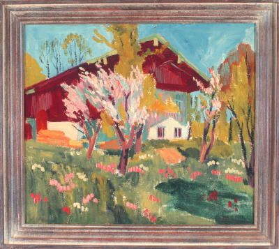 Blick auf das Exterhaus am Chiemsee im Frühling