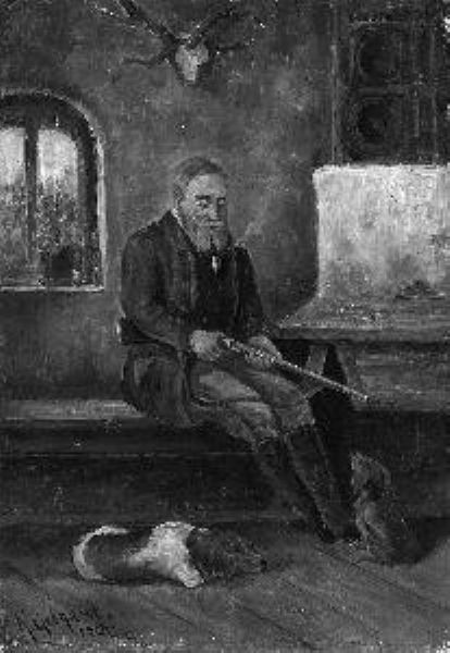 Jäger mit Hunden in der Stube