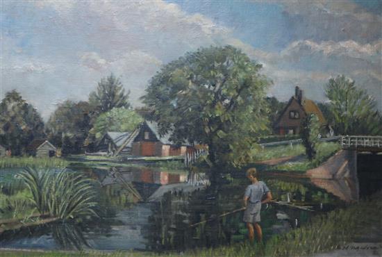 Boy angler in a landscape