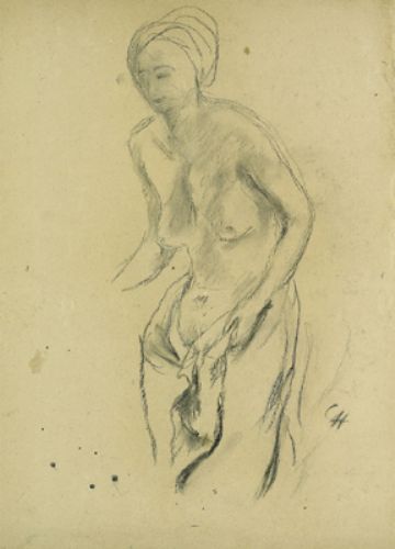 Standing Female Nude, a scarf aroung the hips