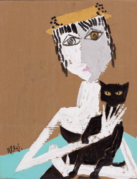 Dame mit schwarzer Katze