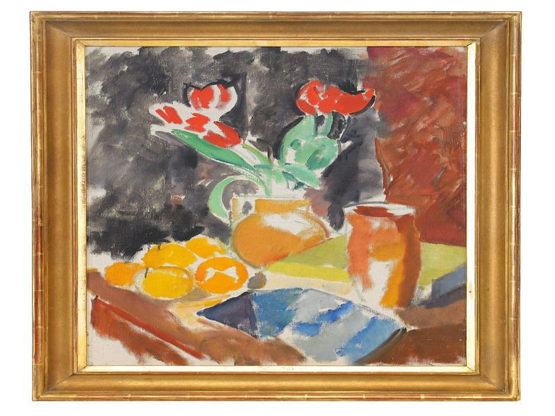 Nature morte med tulpaner och apelsiner
