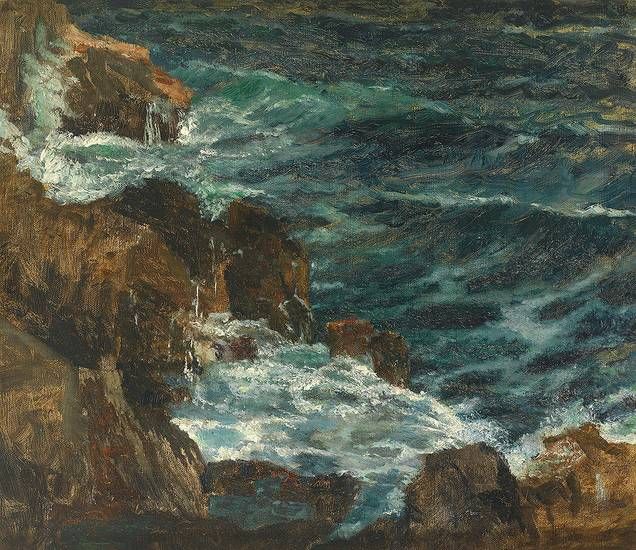 Blick auf die Steilküste mit malerisch beleuchteter Brandung