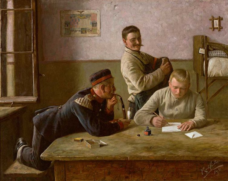 Drei Soldaten auf der Stube.