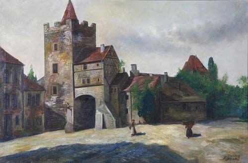 Häuser und Stadttor einer Stadt in Mittel- oder Ostdeutschland