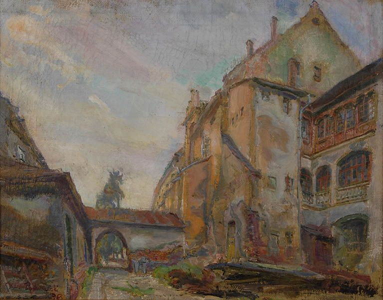 PEJZAŻ MIEJSKI Z BRAMĄ