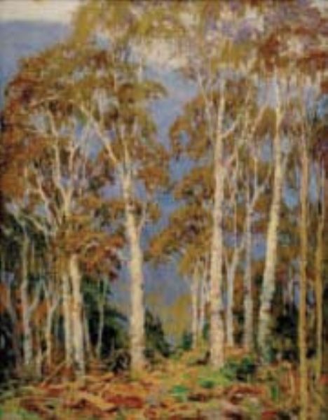 LANDSCAPE WITH BIRCH TREES ON A MOUNTAIN PATH