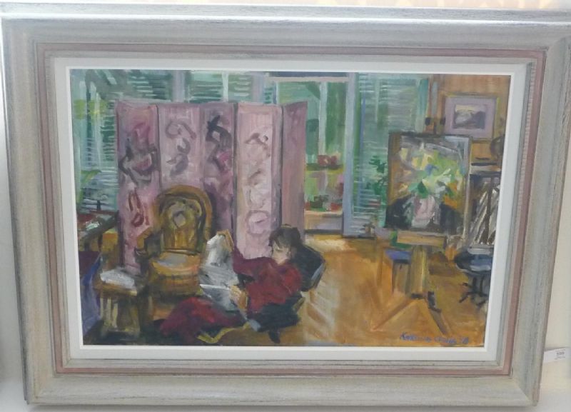 Figure reading in an artist's studio