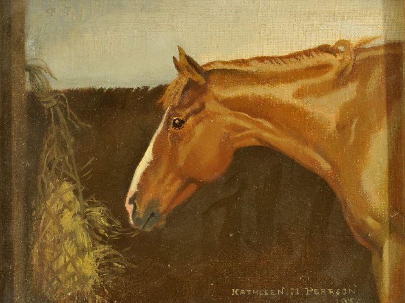 STUDY OF A CHESTNUT HUNTER'S HEAD IN A STABLE