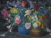 A Still Life with Roses, Daffodils and Other Flowers in Two Vases
